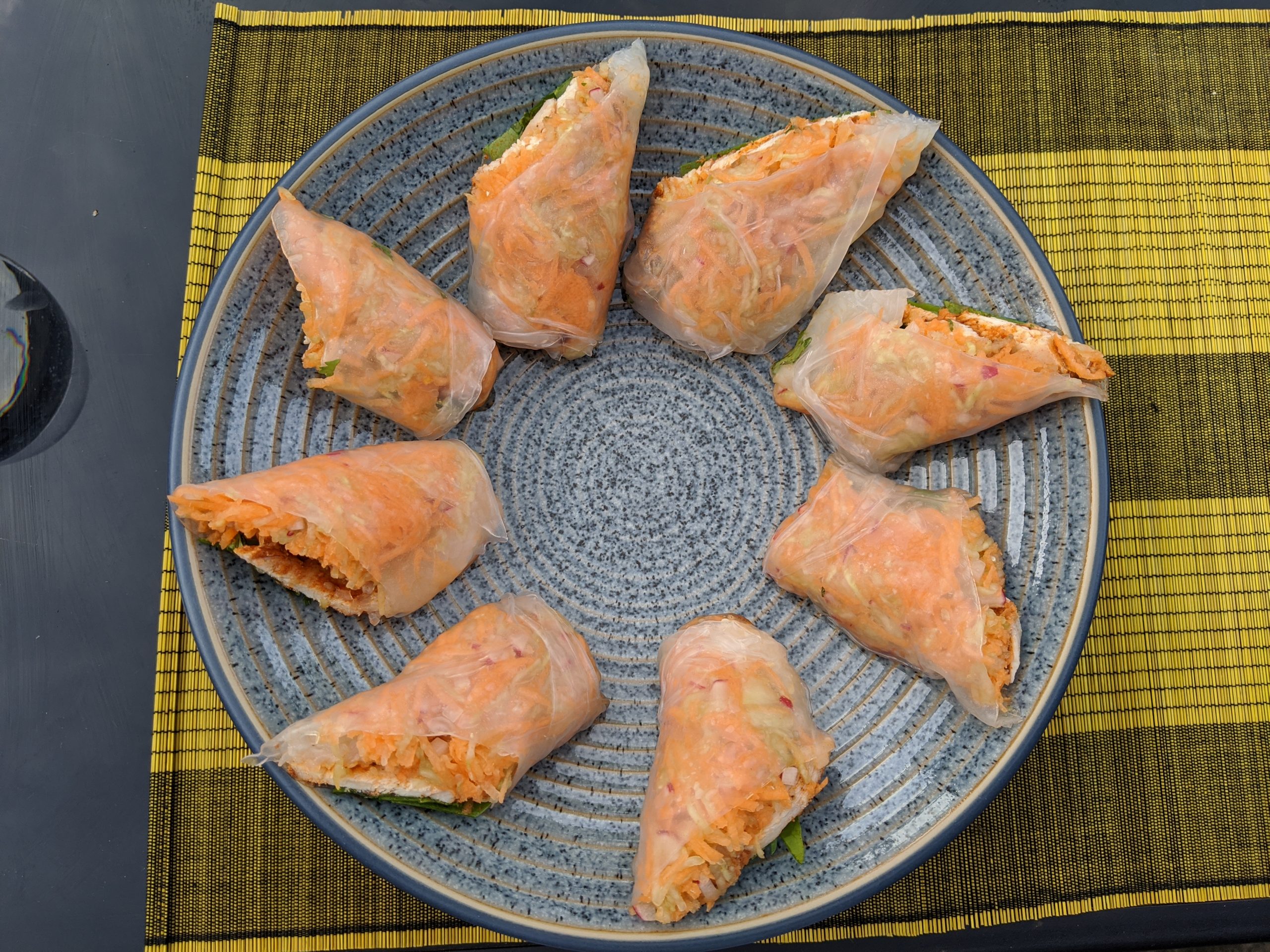 These rice paper rolls can contain anything really, making them perfect for leftovers and clearing out the fridge. The lime and mint add a huge amount of freshness that is hard to match. Serve with peanut sauce for the best experience.
